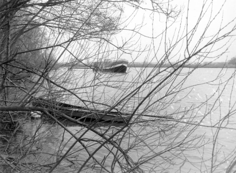 Hoog water. roeiboot in Dode Maasarm Rijkel