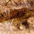 Proefopgraving van een Romeinse villa bij de Solberg (aan de Bovenste Solbergweg) 1978. Dwarsdoorsnede van vermoedelijke afvalput. Gevonden voorwerpen o.a. aardewerkscherven, bronsrestjes, kraal, spijkers etc.
