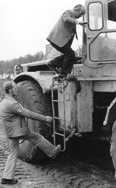 1e spade visvijver Offenbeek 1978. De 1e spade voor de aanleg van de nieuwe visvijver "Rooversheideplas" gelegen aan de Sebastopol door burgemeester J.T. Hendrix.