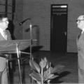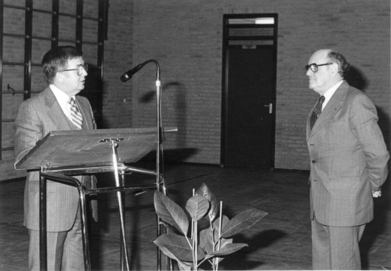 Op de foto wordt de bedenker van de naam "De Schans", dhr. Janssen, bedankt
