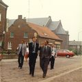 Bezoek staatssecretaris Brokx en H.I.D. Jacobs van Volkshuisvesting i.v.m. sleuteloverdracht Kroetpers (voormalig Timson terrein)