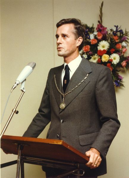 Installatie drs. C.A.C.M. Nuytens tot burgemeester. Burgemeester Nuytens tijdens zijn installatierede.