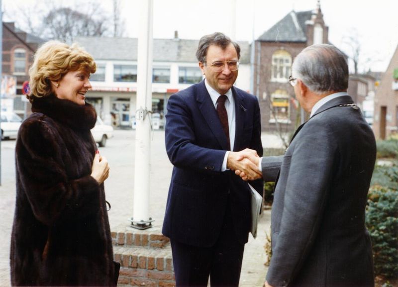 Ambtelijk werkbezoek Gouverneur J. Kremers. Ontvangst gouverneur met echtgenote door burgemeester J.T. Hendrix.