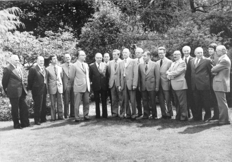 Zittingsperiode gemeenteraad 1970-1974. Foto genomen in de tuin van de zusters aan de Past. Vranckenlaan.