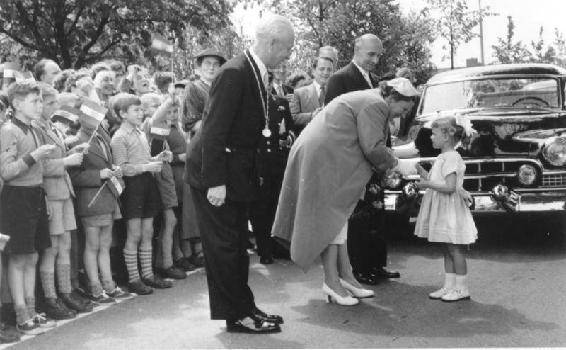 Reportage van het bezoek van H.M. de Koningin op 14 mei 1956.