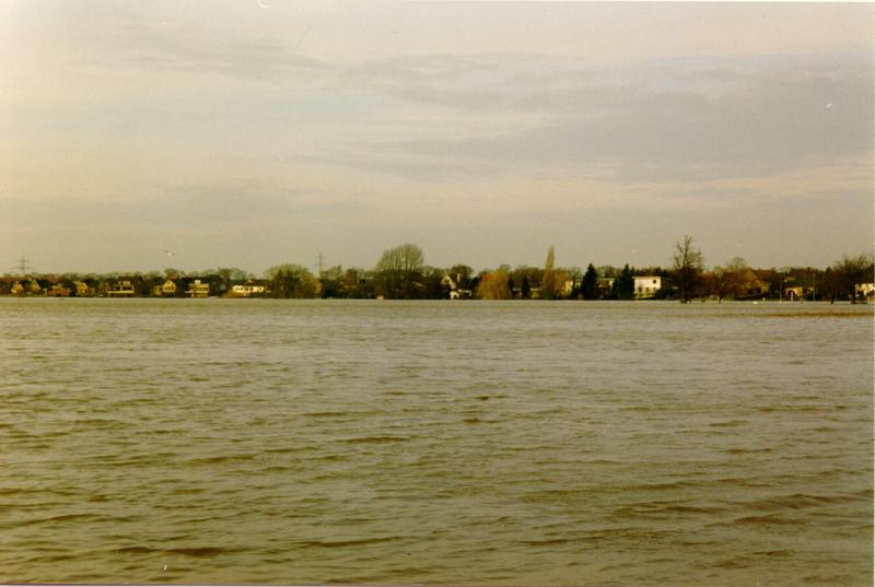 Hoog water in de winter van 1993 - 1994 met zicht op Kessel