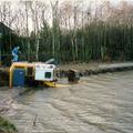 Bij hoog water in de winter van 1993 - 1994 kiepte deze graafmachine in de lager gelegen greppel.