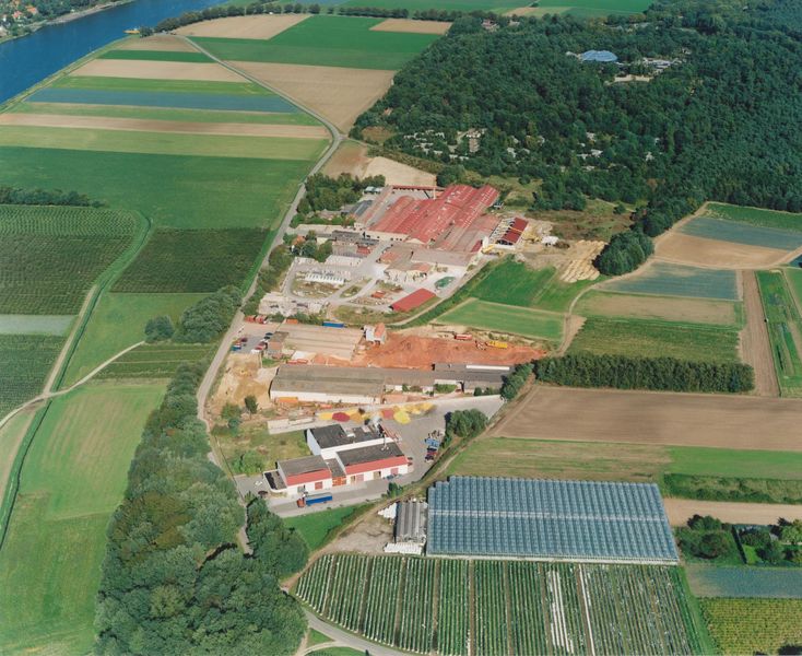 Luchtfoto van de stroopfabriek Timson Timmermans op de nieuwe locatie aan de Sint Jorisstraat in Beesel.