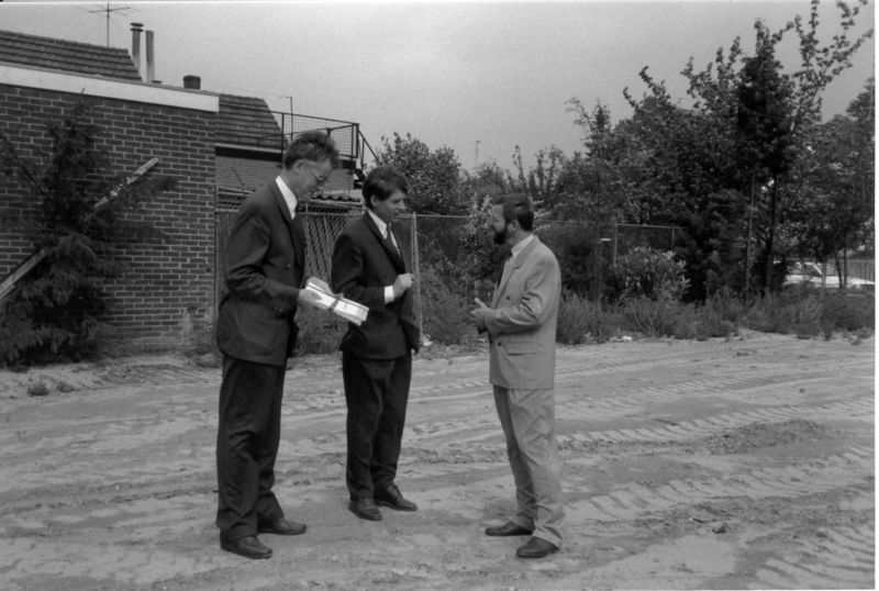 September 1990: Start Albert Heijn Reuver. Links burgemeester Nuytens. Foto is genomen op de vestigingslocatie.