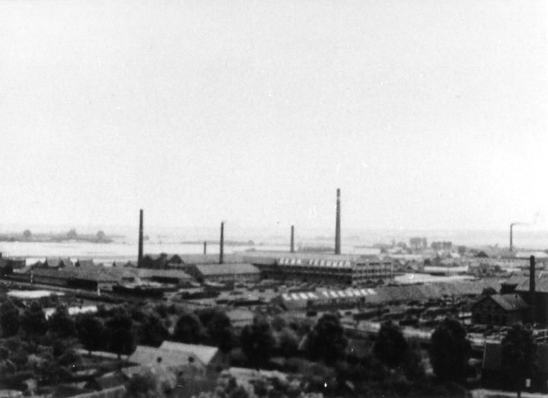 Foto greswarenfabriek Teeuwen gezien vanaf de kerktoren van de Sint Lambertuskerk.