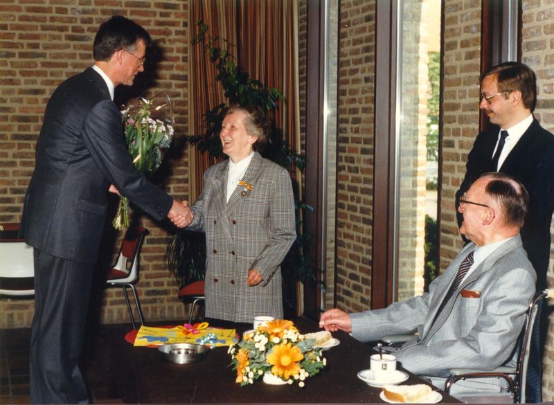 Koninklijke Onderscheiding wordt door burgemeester Nuytens uitgereikt aan mevr. G. Bongaerts.
