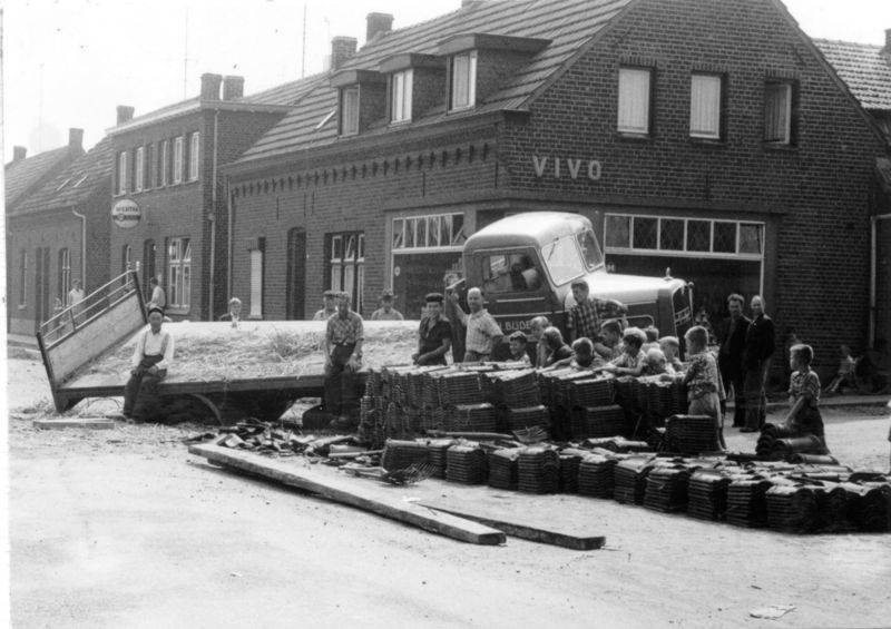 Verzakking in het wegdek op de hoek van de Mariastraat - Keulseweg in 1962 kort nadat deze weg was verbeterd