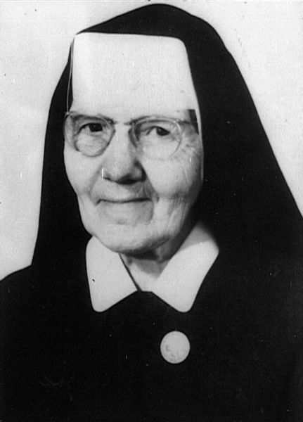 De eerwaarde zuster Marie Luttels uit Beesel. Congregatie van de Goddelijke Voorzienigheid van Créhen.
