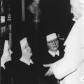 Midden de eerwaarde zuster Marie - Gemma Janssen uit Beesel tijdens een Pauselijke Nuntiatuur in Parijs.