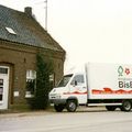 Kringloopcentrum BisBis haalde met deze bestelbus bij de huishoudens in de gemeente Beesel nog bruikbare spullen op en bracht de verkochte spullen weer thuis. Het kringloopcentrum startte begin jaren negentig in de boerderij op de foto met opslaan, opknappen en verkopen van nog bruikbare spullen.