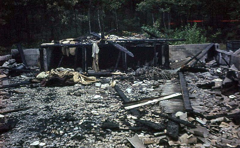 Het HK (hoofdkwartier) van de verkennersgroep Sint Lambertus werd begin zestiger jaren door een brand getroffen. Dit bleef er over. Op de achtergrond De Bercken en nog zichtbaar de nesten van de welpen en de hutten van patrouilles..
