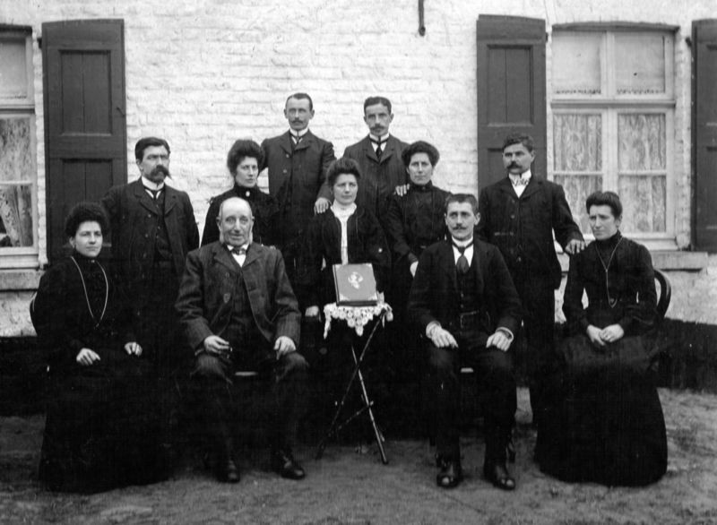 Van links naar rechts: zittend: 1 Tante Dien (Gerardine) Stox, 2 Godefridus Stox (vader), 3 ome Sef Stox, 4 Tante Marie Stox (Moeder van Marie was getrouwd met Harie Rovers (de Beeselse verzetsman). middelste Rij: 5 Baér (Antonius Hubertus, gehuwd met tante Ploon) Bors, 6 tante Ploon (Appelonia) Stox, 7 Tante An(na) Stox ,8 tante Léne (Helena) Stox, 9 Sjang Thijssen achterste rij: 10 Baér (Antonius Hubertus) Cremers en 11 Sjang Thijssen (neef van Sjang (9)