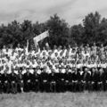 Groepsfoto van gymnastiekvereniging Hercules '03 ter ere van hun 50 jarig bestaan in 1953.
