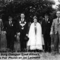 Met van links naar rechts: Burgemeester Claessen, Sjaak Killaars, Engel Weijers met zijn vrouw, Piet Peulen en Jac. Laumans.