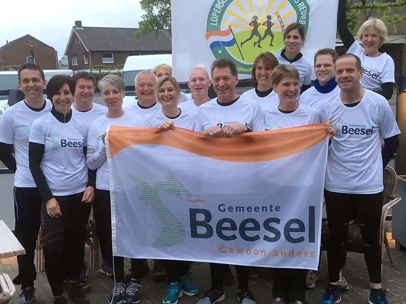 Dit zijn de lopers die het bevrijdingsvuur ophaalden in Wageningen om naar Offenbeek te brengen op bevrijdingsdag 2017..